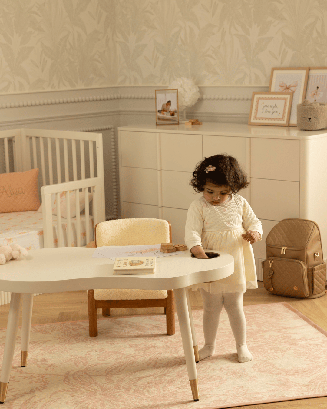 The original bassinet legs are thoughtfully repurposed — they attach seamlessly to the included tabletop, transforming into an ergonomic children’s table. From one product, you now have two.