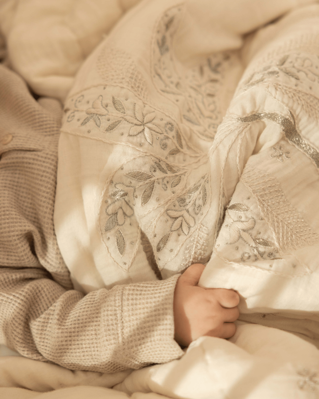 Made in the softest organic cotton, every element is designed to be gentle on delicate skin while offering comfort, support, and breathability. The quilted textures add depth and softness, while the neutral palette keeps the overall look timeless and serene.